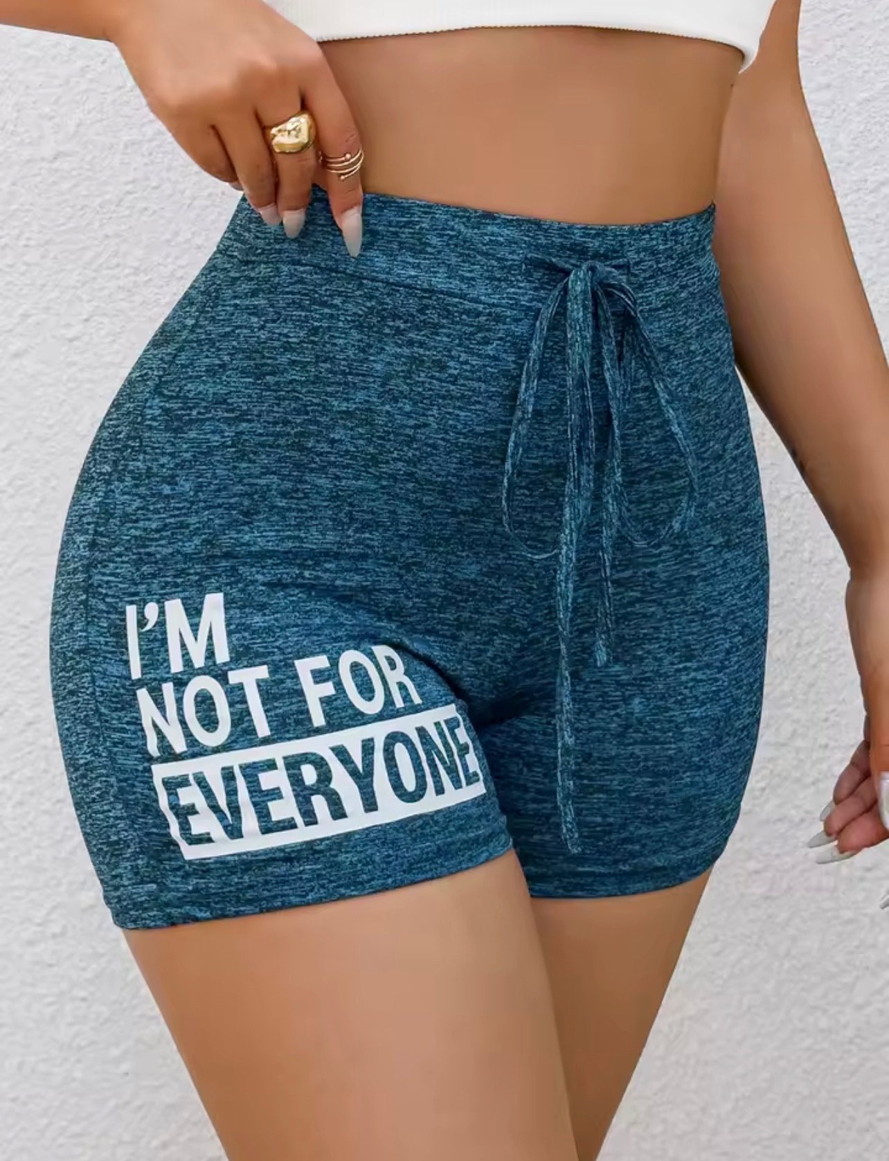 Womens High Waist Shorts Casual Sporty Blue Printed Drawstring Waist Slim Fit Lounge Daily Pants